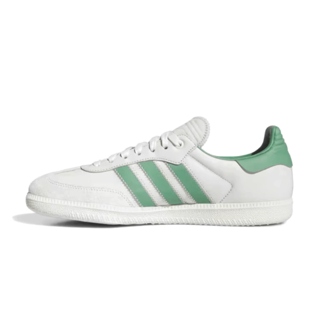 Este tênis é mais do que um calçado; é uma celebração do artesanato e da herança adidas no universo do futebol, reinterpretada com elegância e inovação. Perfeito para compor looks urbanos com um toque de distinção, o Adidas Humanrace x Samba Pharrell Williams 'Preloved Green' é uma escolha segura para quem deseja aliar estilo, conforto e exclusividade.