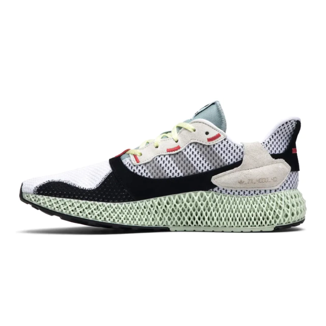 O cabedal combina a leveza e respirabilidade da malha com painéis em camurça branca e cinza, criando um contraste elegante e versátil. Os detalhes vibrantes no cadarço, na costura e no solado dão um toque de personalidade e modernidade, tornando o ZX 4000 4D uma peça-chave para quem busca estilo e performance.