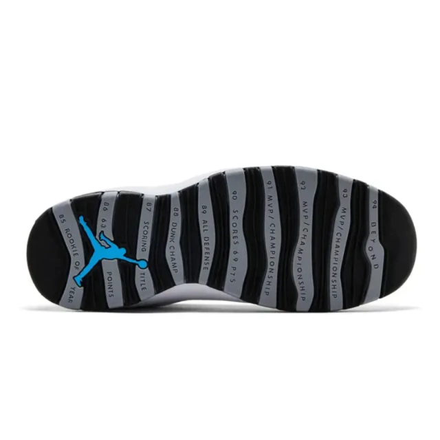 Por dentro, a entressola em Phylon oferece leveza e conforto, aliada a uma unidade Air-Sole de carga superior com comprimento total, que garante amortecimento superior em cada passo. O solado de borracha revela um Jumpman em azul-petróleo e exibe uma lista dos dez momentos inesquecíveis da carreira de Michael Jordan, tornando cada pisada uma verdadeira celebração da história do basquete.