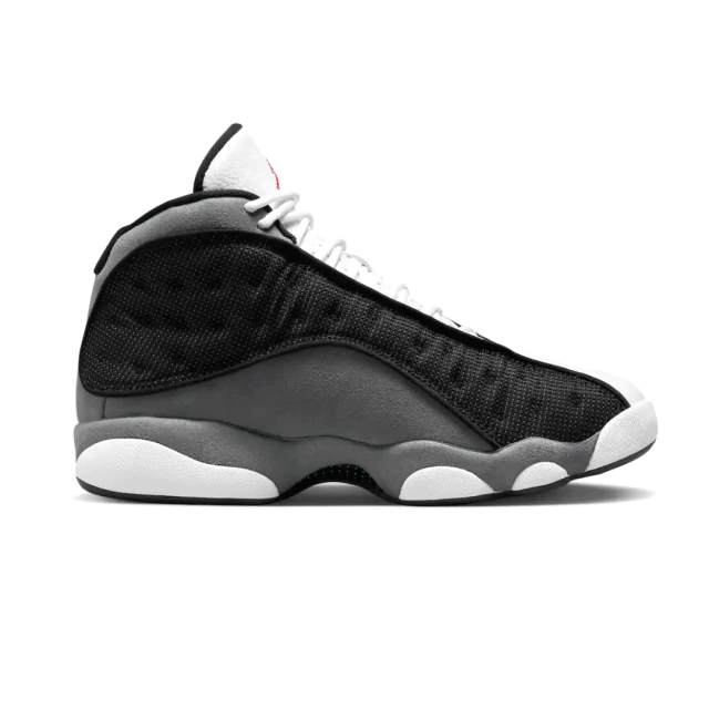 A construção atualizada traz uma colorway que substitui o azul do modelo anterior pelo preto, que surge no cabedal tendo como base o cinza em camurça e o branco em couro. O modelo também conta com detalhe vermelho no logo Jumpman e malha reflexiva 3M.