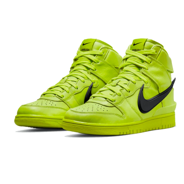 Esse lançamento é fruto da união da fundadora da AMBUSH® Yoon Ahn com a Nike para trazer uma criação vibrante definida pelos detalhes do co-branding e estética inspirada no motociclismo. A quarta colorway da colaboração apresenta um Flash Lime eletrizante, uma referência às luzes de Tóquio.