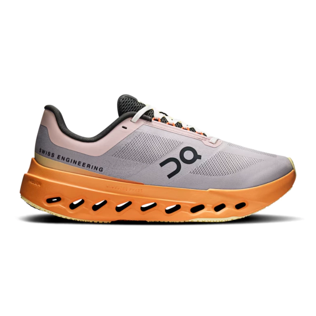 Tênis On Cloudsurfer Next 'Lilac Tangerine' – onde esforço mínimo encontra velocidade máxima. Projetado para corredores que buscam uma experiência leve e dinâmica, este modelo eleva sua performance com tecnologia de ponta e um design inspirado em tênis de competição.