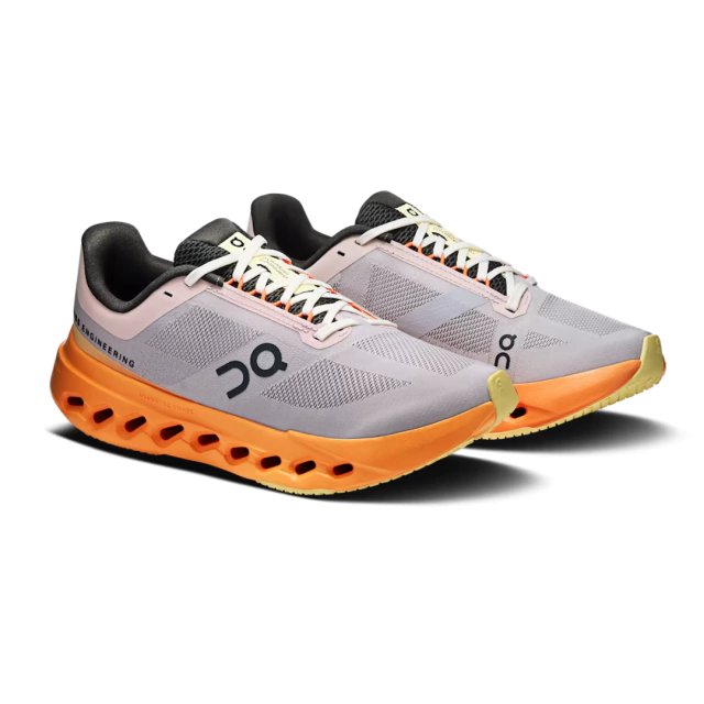 Além da performance, o estilo do Cloudsurfer Next 'Lilac Tangerine' é única — uma silhueta moderna com um toque vibrante que combina o lilás suave com detalhes tangerina, perfeito para quem quer se destacar com personalidade e conforto.